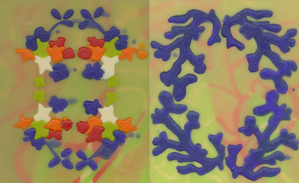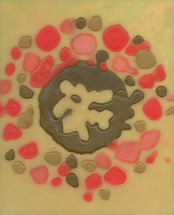 acrylic paint and micro crystalline wax on plywood
